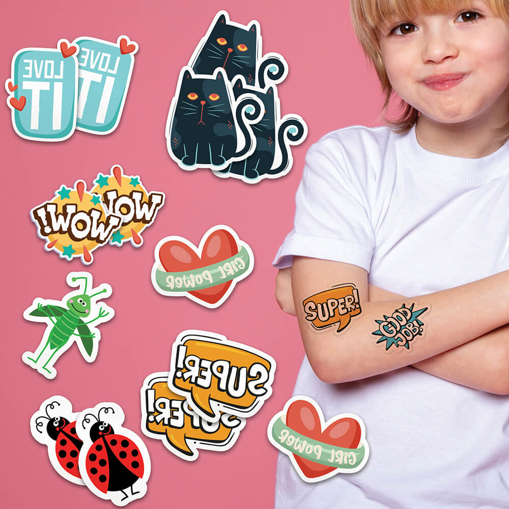 Oltre alla versione UV proponiamo una linea di tatuaggi temporanei tradizionali: sicuri, facili da applicare e perfetti per un pubblico trasversale.